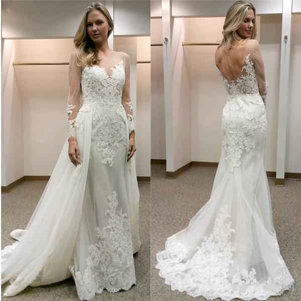 Wedding Dresses With Detachable Train Lace Appliques Long Sleeve Court Train Mermaid Bridal Dresses Gowns 2019 Backless Wedding Dresses Bridal Dress