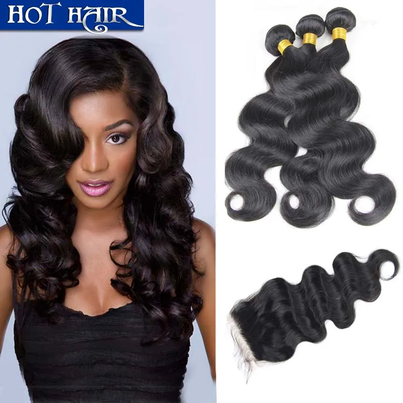7a Brazilian Virgin Hair With Closure 3 Bundles Body Wave With