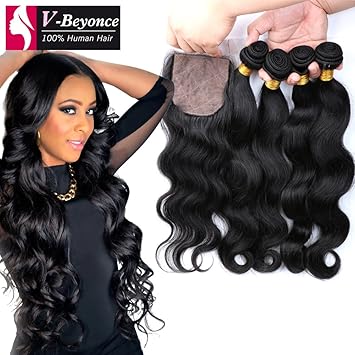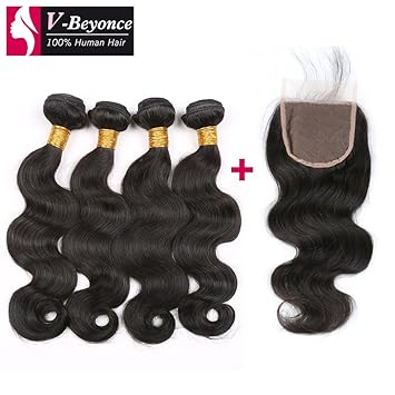 Amazon Com V Beyonce 4x4 Lace Closure With Bundles Brazilian