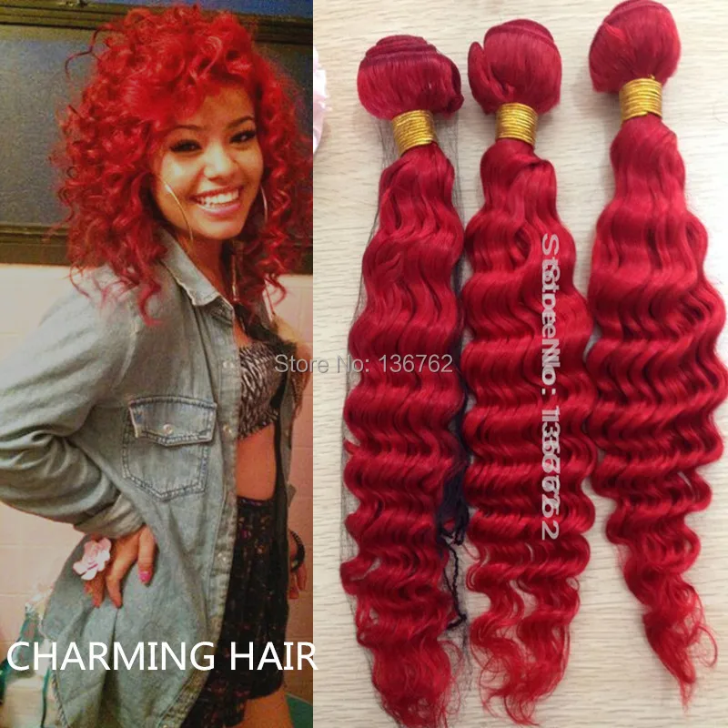 Red Deep Wave Virgin Brazilian Hair Weave Bundles In Stock